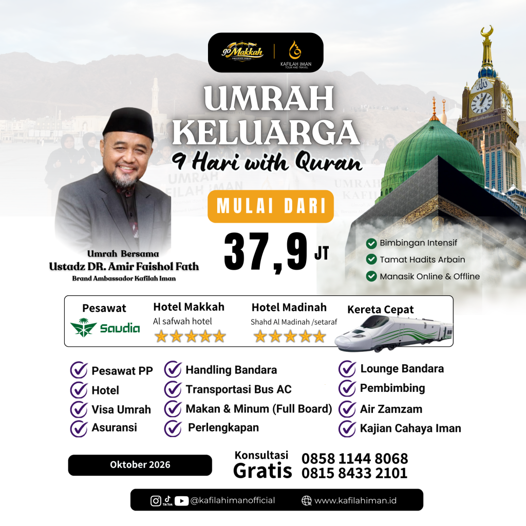 Langkahkan kaki menuju Baitullah dalam perjalanan Umrah Oktober Exclusive. Dengan fasilitas terbaik dan bimbingan Abi Amir, setiap doa di Tanah Suci menjadi lebih bermakna, setiap ibadah terasa lebih dekat kepada Allah.