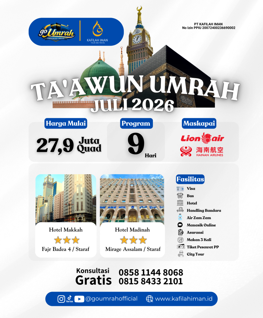 Umrah September, saat yang tepat untuk memenuhi panggilan hati menuju Baitullah. Nikmati perjalanan ibadah yang nyaman, fasilitas terbaik, serta bimbingan ibadah yang membantu setiap jamaah meraih umrah yang mabrur.