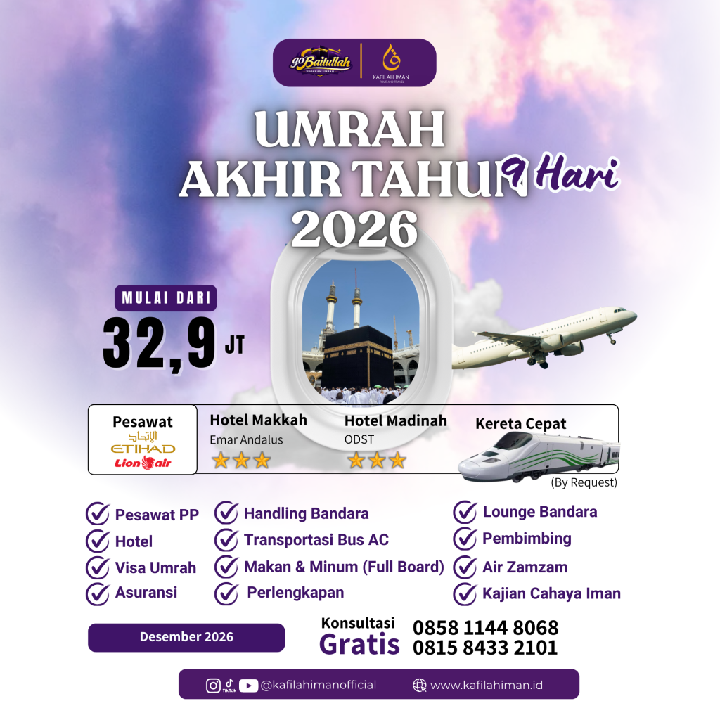 Umrah Akhir Tahun Exclusive – perjalanan ibadah istimewa dengan fasilitas hotel bintang 5 di Makkah dan Madinah serta bimbingan langsung oleh Abi Amir. Nikmati ibadah yang lebih nyaman, khusyuk, dan penuh makna di Tanah Suci Umrah. 📞 Daftar sekarang: 081584332101